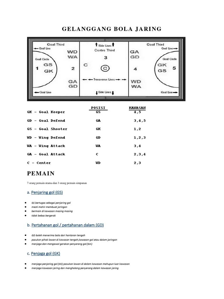 Posisi pemain bola voli · tugas pemain bola voli kedudukan pemain bola jaring. Penjaga gol (goal keeper = gk) menjaga penjaring gol (gs) pasukan lawan baik di dalam kawasan mahupun di luar kawasan jaringan.